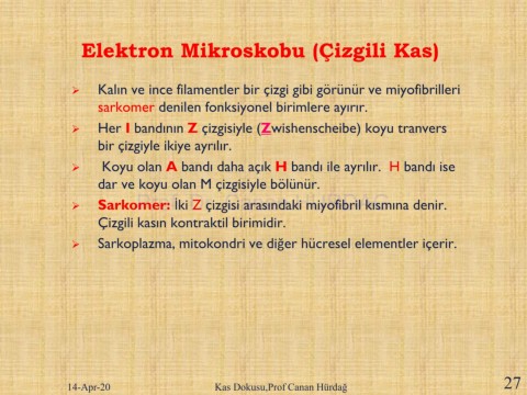 ➢ Sarkomer: İki Z çizgisi arasındaki miyofibril kısmına denir.