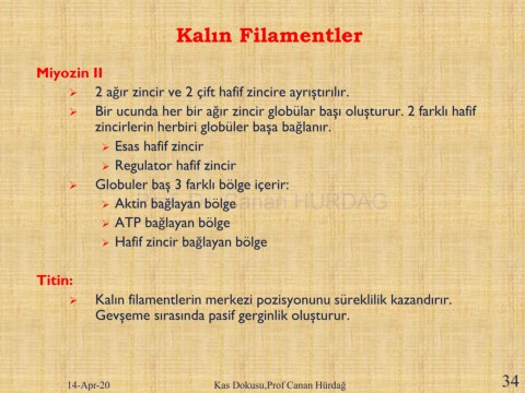 ➢ Kalın filamentlerin merkezi pozisyonunu süreklilik kazandırır.