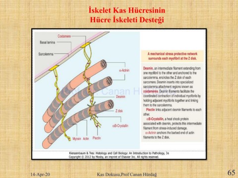 İskelet Kas Hücresinin Hücre İskeleti Desteği Prof. Dr. Canan HURDAG 65 14-Apr-20 Kas Dokusu,Prof Canan Hürdağ