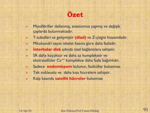 ➢ T-tubulleri az gelişmiştir (diad) ve Z-çizgisi hizasındadır.