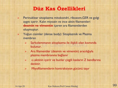 ➢ -aktinin içerir ve bunlar çizgili kasların Z bandlarına