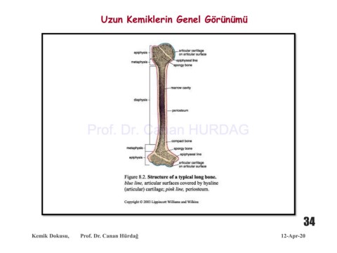 Uzun Kemiklerin Genel Görünümü Prof. Dr. Canan HURDAG 34 Kemik Dokusu, Prof. Dr. Canan Hürdağ 12-Apr-20