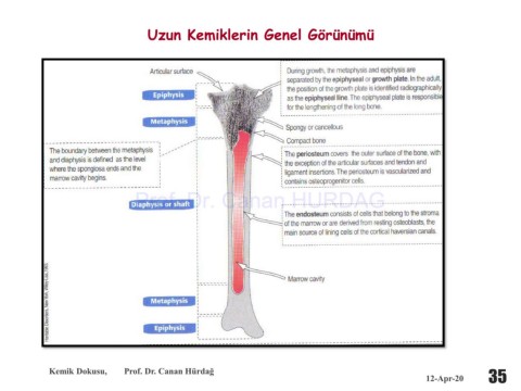 Uzun Kemiklerin Genel Görünümü Prof. Dr. Canan HURDAG Kemik Dokusu, Prof. Dr. Canan Hürdağ 35 12-Apr-20