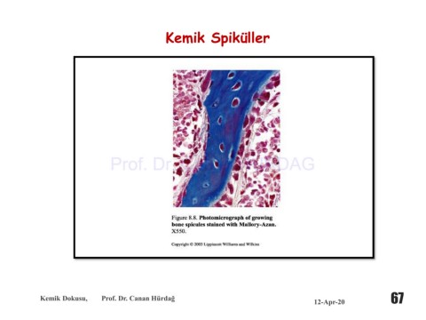 Kemik Spiküller Prof. Dr. Canan HURDAG Kemik Dokusu, Prof. Dr. Canan Hürdağ 67 12-Apr-20