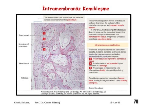 İntramembranöz Kemikleşme Prof. Dr. Canan HURDAG 70 Kemik Dokusu, Prof. Dr. Canan Hürdağ 12-Apr-20