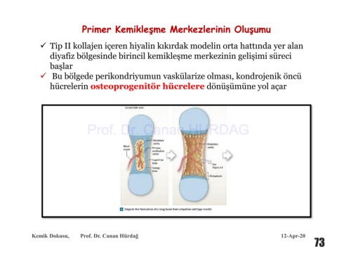 diyafiz bölgesinde birincil kemikleşme merkezinin gelişimi süreci