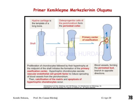 Primer Kemikleşme Merkezlerinin Oluşumu Prof. Dr. Canan HURDAG 78 Kemik Dokusu, Prof. Dr. Canan Hürdağ 12-Apr-20