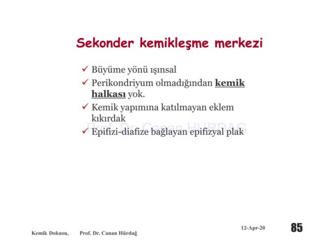 ✓ Epifizi-diafize bağlayan epifizyal plak