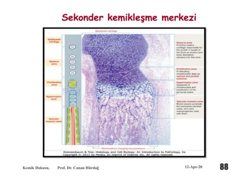 Sekonder kemikleşme merkezi Prof. Dr. Canan HURDAG Kemik Dokusu, Prof. Dr. Canan Hürdağ 12-Apr-20 88