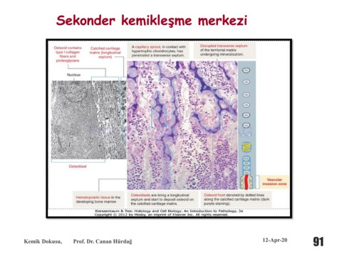Sekonder kemikleşme merkezi Prof. Dr. Canan HURDAG Kemik Dokusu, Prof. Dr. Canan Hürdağ 12-Apr-20 91