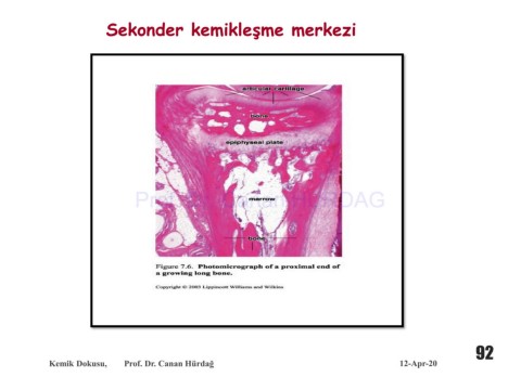 Sekonder kemikleşme merkezi Prof. Dr. Canan HURDAG 92 Kemik Dokusu, Prof. Dr. Canan Hürdağ 12-Apr-20