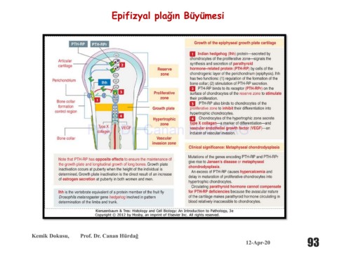 Epifizyal plağın Büyümesi Prof. Dr. Canan HURDAG Kemik Dokusu, Prof. Dr. Canan Hürdağ 12-Apr-20 93