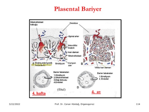 Plasental Bariyer deFetal damar (fötal) 4. hafta 4. ay 3/22/2022 Prof. Dr. Canan Hürdağ, Organogenez 114