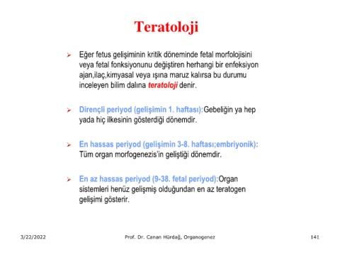 3/22/2022 Prof. Dr. Canan Hürdağ, Organogenez 141