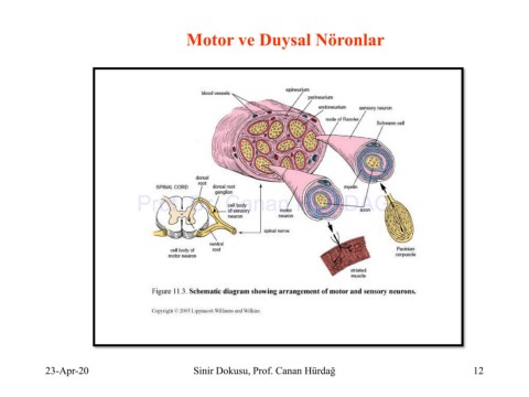 Motor ve Duysal Nöronlar Prof. Dr. Canan HURDAG 23-Apr-20 Sinir Dokusu, Prof. Canan Hürdağ 12