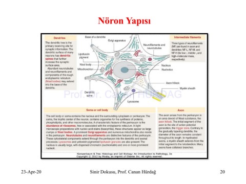 Nöron Yapısı Prof. Dr. Canan HURDAG 23-Apr-20 Sinir Dokusu, Prof. Canan Hürdağ 20
