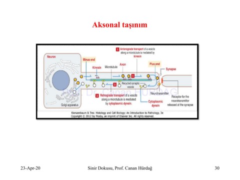 Aksonal taşınım Prof. Dr. Canan HURDAG 23-Apr-20 Sinir Dokusu, Prof. Canan Hürdağ 30
