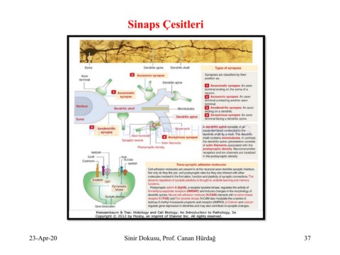 Sinaps Çesitleri Prof. Dr. Canan HURDAG 23-Apr-20 Sinir Dokusu, Prof. Canan Hürdağ 37