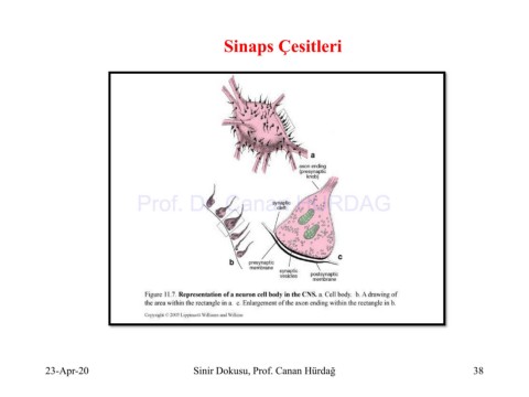 Sinaps Çesitleri Prof. Dr. Canan HURDAG 23-Apr-20 Sinir Dokusu, Prof. Canan Hürdağ 38