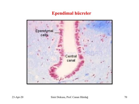 Ependimal hücreler Prof. Dr. Canan HURDAG 23-Apr-20 Sinir Dokusu, Prof. Canan Hürdağ 70