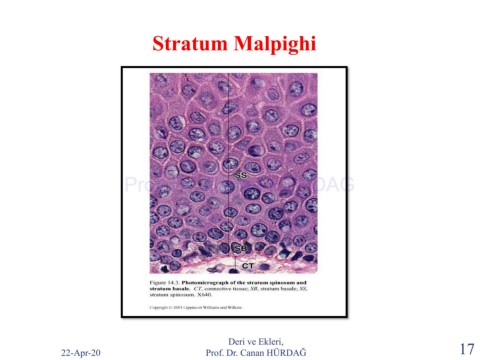 Stratum Malpighi Prof. Dr. Canan HURDAG Deri ve Ekleri, 22-Apr-20 Prof. Dr. Canan HÜRDAĞ 17