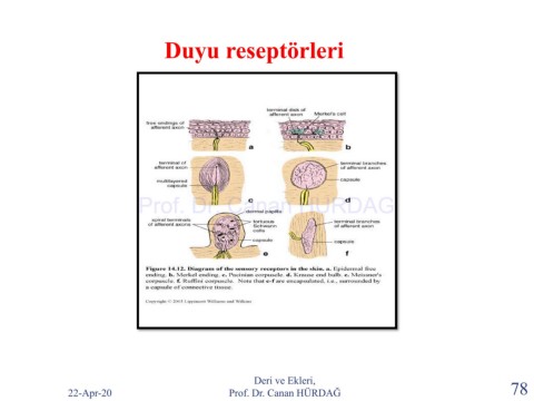 Duyu reseptörleri Prof. Dr. Canan HURDAG Deri ve Ekleri, 22-Apr-20 Prof. Dr. Canan HÜRDAĞ 78