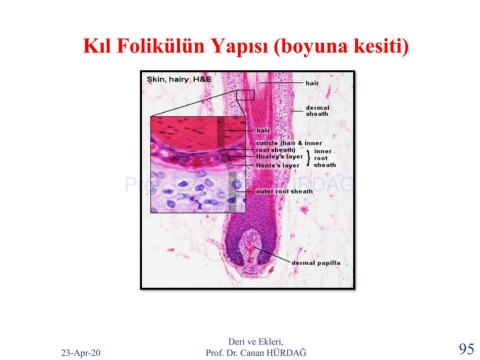Kıl Folikülün Yapısı (boyuna kesiti) Prof. Dr. Canan HURDAG Deri ve Ekleri, 23-Apr-20 Prof. Dr. Canan HÜRDAĞ 95