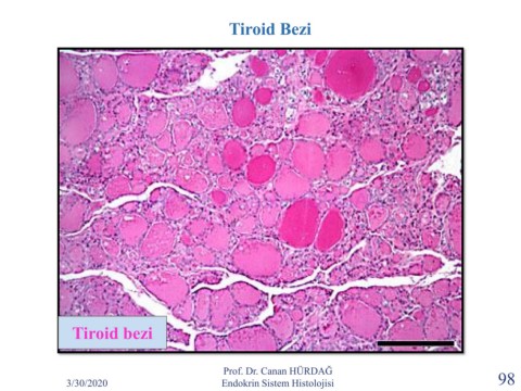 Tiroid Bezi Prof. Dr. Canan HURDAG Tiroid bezi Prof. Dr. Canan HÜRDAĞ 3/30/2020 Endokrin Sistem Histolojisi 98