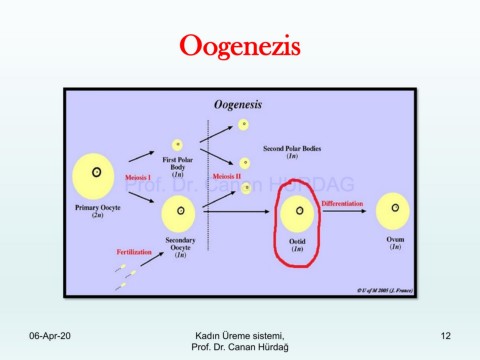 Oogenezis Prof. Dr. Canan HURDAG 06-Apr-20 Kadın Üreme sistemi, 12 Prof. Dr. Canan Hürdağ