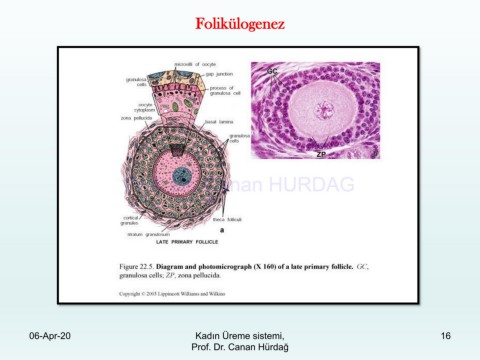 Folikülogenez Prof. Dr. Canan HURDAG 06-Apr-20 Kadın Üreme sistemi, 16 Prof. Dr. Canan Hürdağ