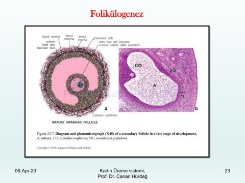 Folikülogenez Prof. Dr. Canan HURDAG 06-Apr-20 Kadın Üreme sistemi, 23 Prof. Dr. Canan Hürdağ