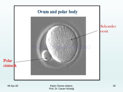 Sekonder oosit Prof. Dr. Canan HURDAG Polar cisimcik 06-Apr-20 Kadın Üreme sistemi, 30 Prof. Dr. Canan Hürdağ