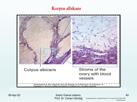 Korpus albikans Prof. Dr. Canan HURDAG 06-Apr-20 Kadın Üreme sistemi, 40 Prof. Dr. Canan Hürdağ Downloaded from: StudentConsult (on 21 January 2012 08:52 PM) © 2005 Elsevier