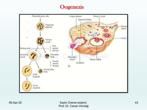 Oogenezis Prof. Dr. Canan HURDAG 06-Apr-20 Kadın Üreme sistemi, 43 Prof. Dr. Canan Hürdağ