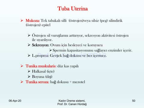 ➢ Mukoza: Tek tabakalı silli (östrojen)veya silsiz (peg) silindirik