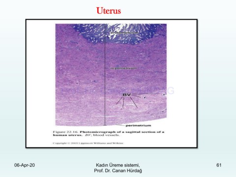 Uterus Prof. Dr. Canan HURDAG 06-Apr-20 Kadın Üreme sistemi, 61 Prof. Dr. Canan Hürdağ