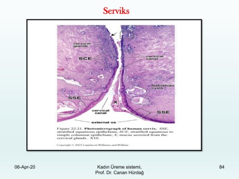 Serviks Prof. Dr. Canan HURDAG 06-Apr-20 Kadın Üreme sistemi, 84 Prof. Dr. Canan Hürdağ
