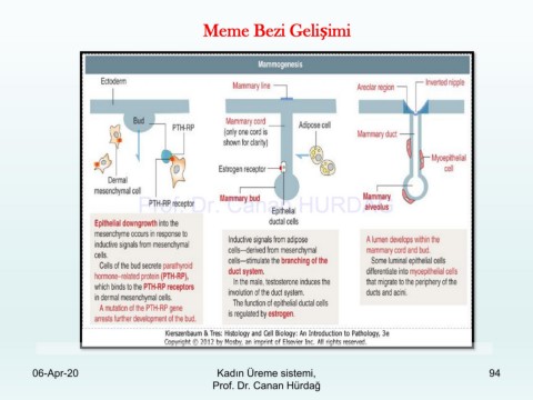Meme Bezi Gelişimi Prof. Dr. Canan HURDAG 06-Apr-20 Kadın Üreme sistemi, 94 Prof. Dr. Canan Hürdağ