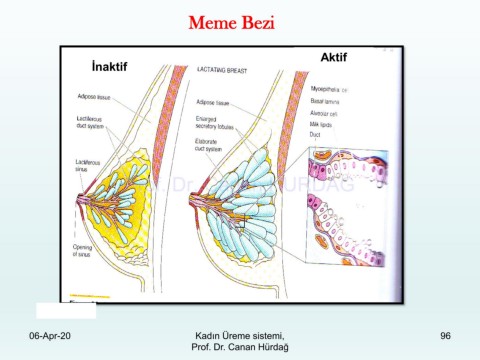 Meme Bezi Aktif İnaktif Prof. Dr. Canan HURDAG 06-Apr-20 Kadın Üreme sistemi, 96 Prof. Dr. Canan Hürdağ
