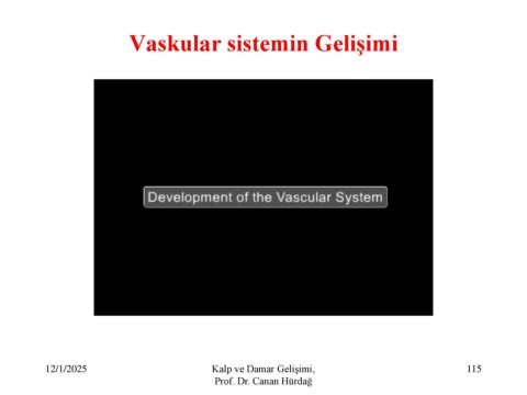 Vaskular sistemin Gelişimi 12/1/2025 Kalp ve Damar Gelişimi, 115 Prof. Dr. Canan Hürdağ