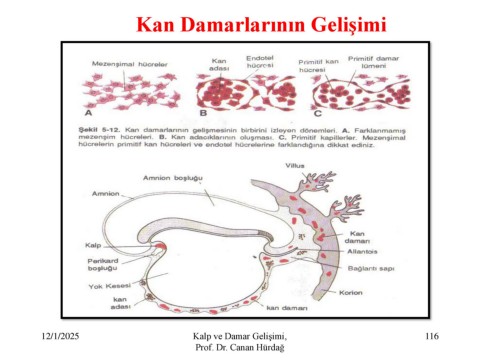 Kan Damarlarının Gelişimi 12/1/2025 Kalp ve Damar Gelişimi, 116 Prof. Dr. Canan Hürdağ