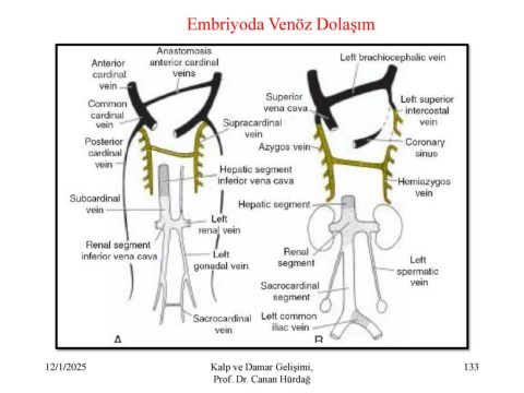 Embriyoda Venöz Dolaşım 12/1/2025 Kalp ve Damar Gelişimi, 133 Prof. Dr. Canan Hürdağ