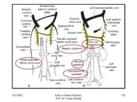 İVC ‘nın Inferiyor kısmı 12/1/2025 Kalp ve Damar Gelişimi, 135 Prof. Dr. Canan Hürdağ