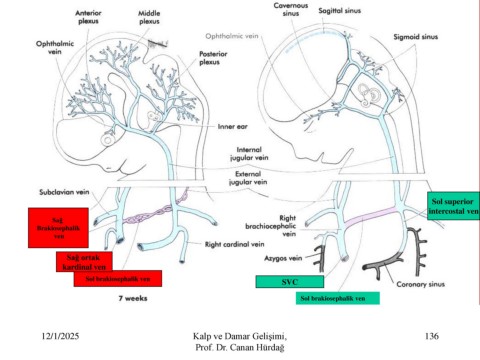 Sol superior intercostal ven Sağ Brakiosephalik ven Sağ ortak kardinal ven Sol brakiosephalik ven SVC Sol brakiosephalik ven 12/1/2025 Kalp ve Damar Gelişimi, 136 Prof. Dr. Canan Hürdağ