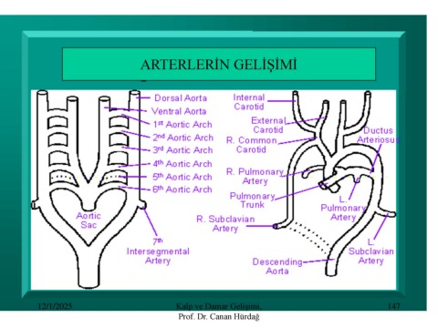 ARTERLERİN GELİŞİMİ 12/1/2025 Kalp ve Damar Gelişimi, 147 Prof. Dr. Canan Hürdağ