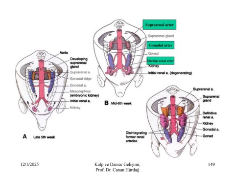 Suprarenal arter Gonadal arter İnterim renal arter 12/1/2025 Kalp ve Damar Gelişimi, 149 Prof. Dr. Canan Hürdağ