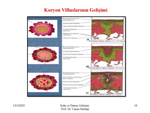 Koryon Villuslarının Gelişimi 12/1/2025 Kalp ve Damar Gelişimi, 18 Prof. Dr. Canan Hürdağ