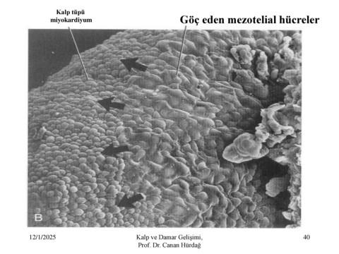 Kalp tüpü miyokardiyum Göç eden mezotelial hücreler 12/1/2025 Kalp ve Damar Gelişimi, 40 Prof. Dr. Canan Hürdağ