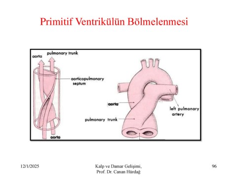 Primitif Ventrikülün Bölmelenmesi 12/1/2025 Kalp ve Damar Gelişimi, 96 Prof. Dr. Canan Hürdağ