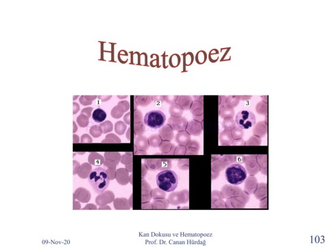 Prof. Dr. Canan HURDAG Kan Dokusu ve Hematopoez 09-Nov-20 Prof. Dr. Canan Hürdağ 103